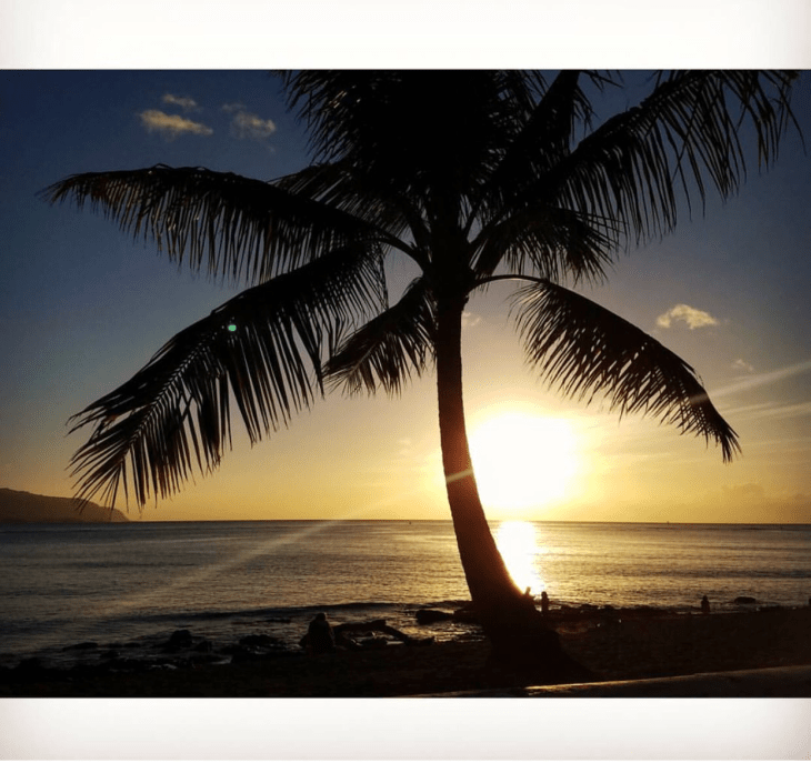 Erin walking along Maili Beach on the west coast of Oahu.
