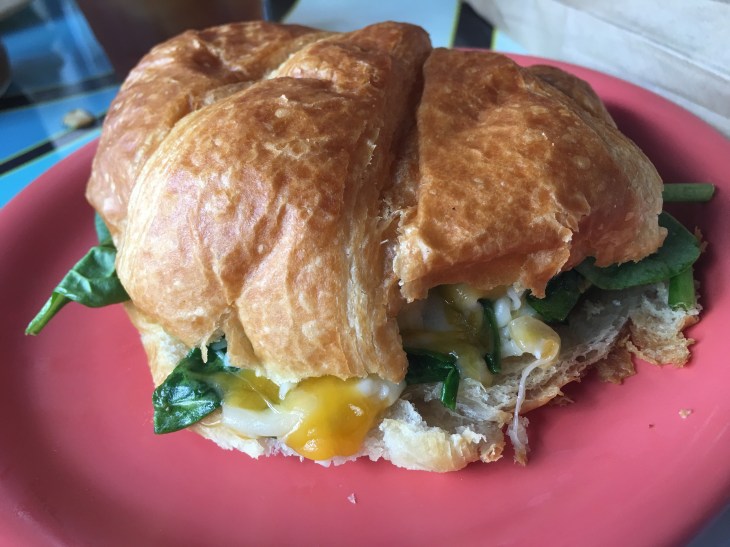 Spinach, egg, and cheese croissant.