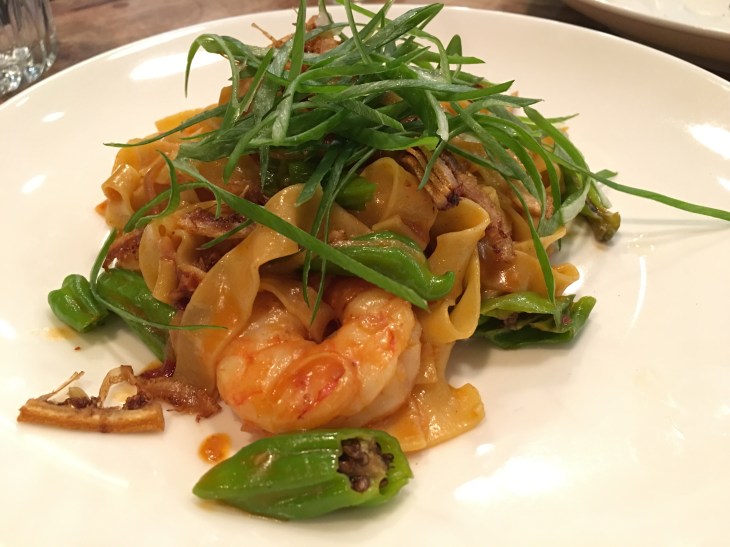 HAWAIIAN PRAWN TAGLIATELLE- fried lemon, shishito peppers, anchovy XO, chives