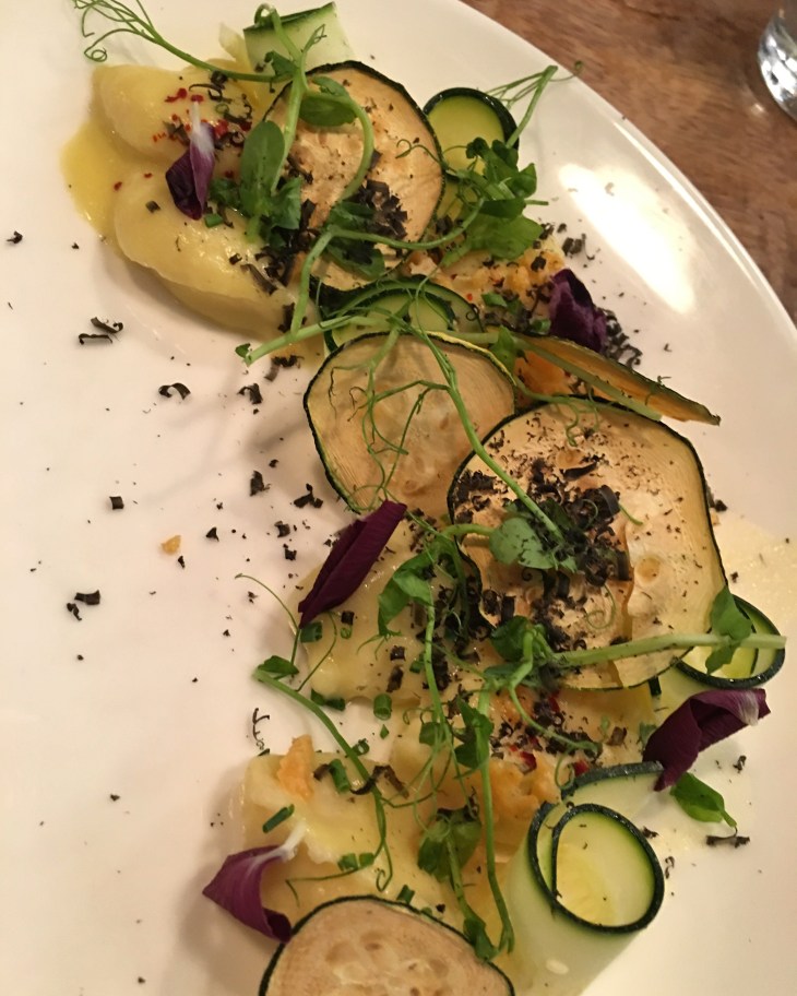 RICOTTA GNOCCHI- various summer squashes, parmesan, espelette, squid ink bottarga